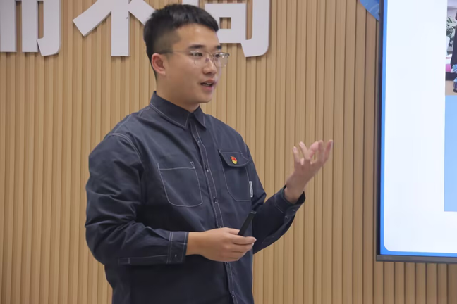 化学化工学院辅导员李申桢和苏元夫共同分享“高校生涯团体辅导培训心得体会”。李申桢介绍了团体辅导的特点、不同高校的教学模式、培训流程。苏元夫介绍了团体辅导的应用、团体破冰游戏,以及培训会的心得体会。