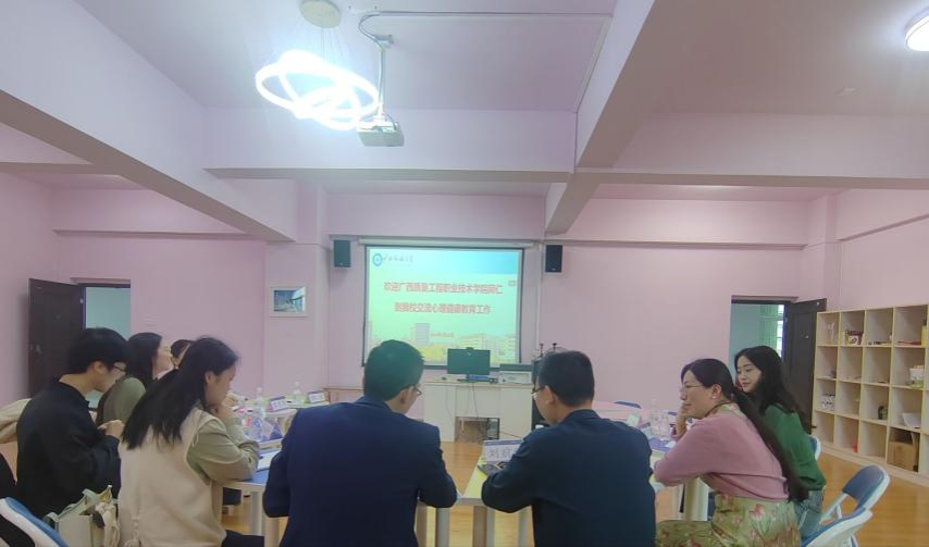 在会议正式开始前,广西质量工程职业技术学院各位老师参观了中心的心理咨询室、沙盘室、宣泄室等,学习交流如何提升中心的硬件设施配备,优化工作环境建设,营造环境育人氛围。
