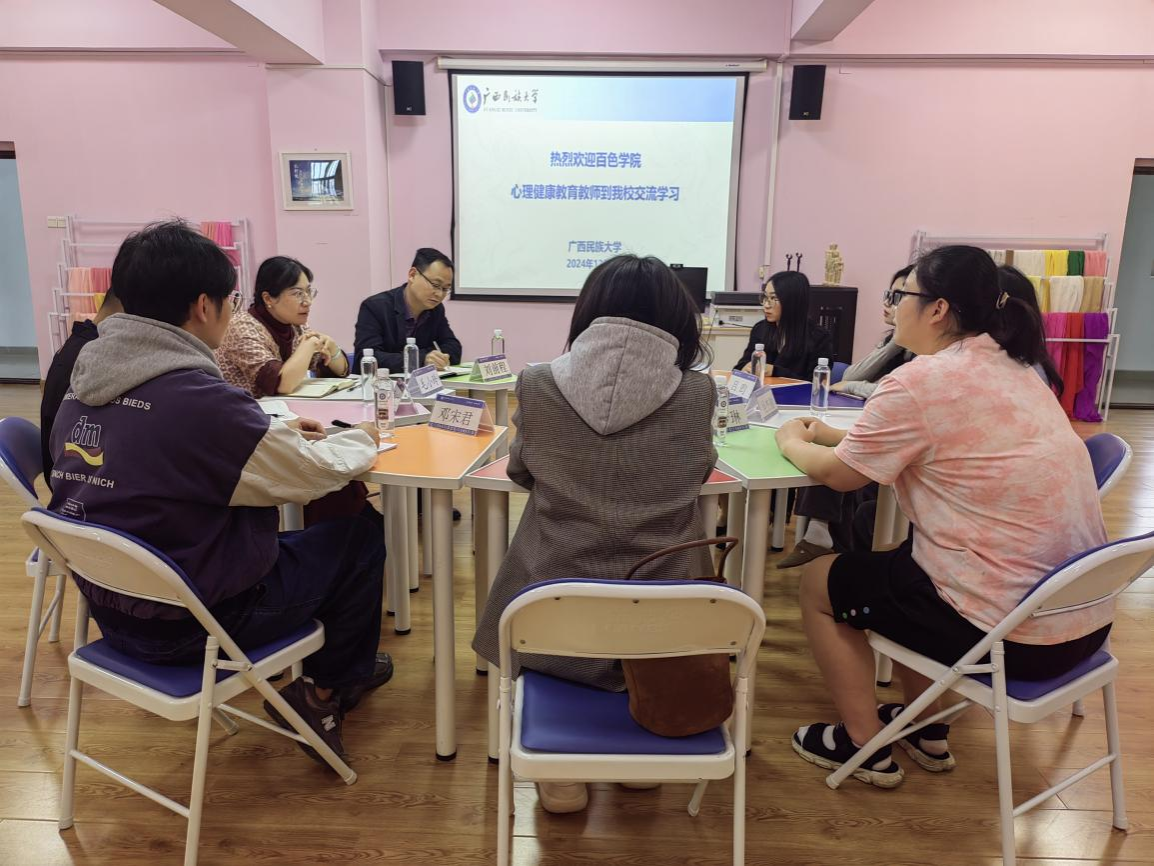 近日,百色学院学工部(处)吕昀等5位学生心理健康教育与咨询中心专职教师到乐天堂f88大学生心理健康教育中心开展交流学习活动。学生工作部(处)副部(处)长刘前程、心理健康教育中心毛小玲副主任等老师参与交流座谈。